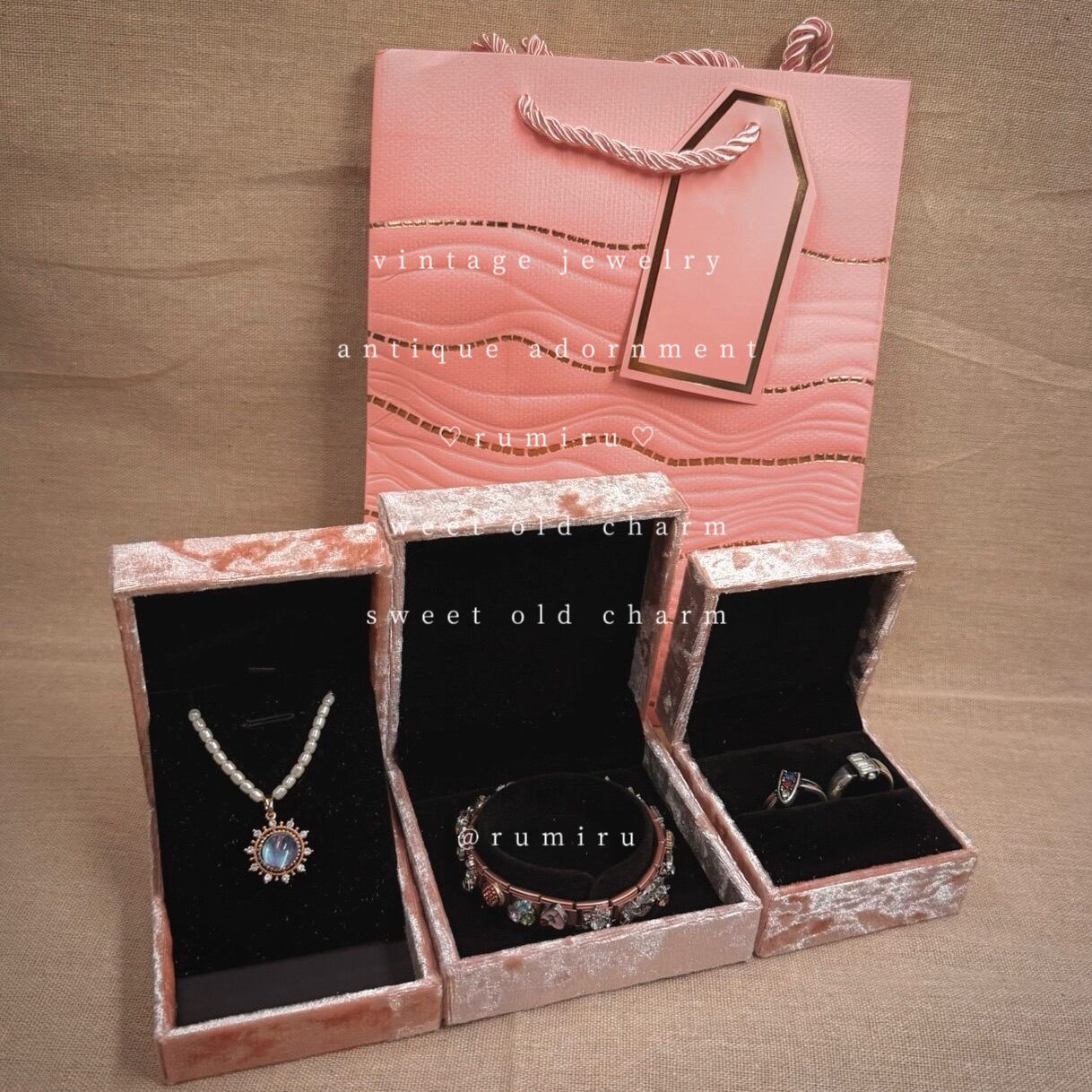 ・BOX内側の黒い部分は埃ではなく、細かなラメが入った仕様です。※光の当たり方によってさりげなくきらめき、アクセサリーをより美しく引き立てます。